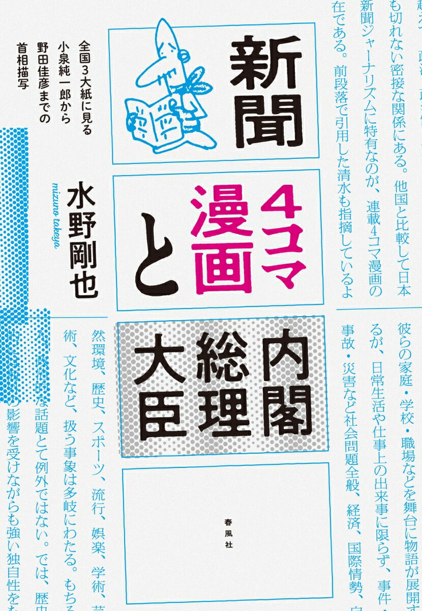 日本の新聞ジャーナリズムの特色の一つといえる「4コマ漫画」。ニュース全般を扱う社会面にその定位置を確保し、ごく普通の庶民(家庭)を主人公(舞台)とした内容で、主要日刊紙の大多数において間断なく掲載されつづけている漫画は、世界的にも稀有である。そこで本書では、7名の首相の在任期間(2001年4月26日〜2012年12月26日、約11年8ヵ月間)を時間枠として、全国3大紙(毎日・読売・朝日)に掲載された全4コマ漫画(朝刊・夕刊とも)を精査し、現職の首相を描いている作品を量的・質的に分析。世論調査にはあらわれなかった、もう一つの首相像を明らかにする。