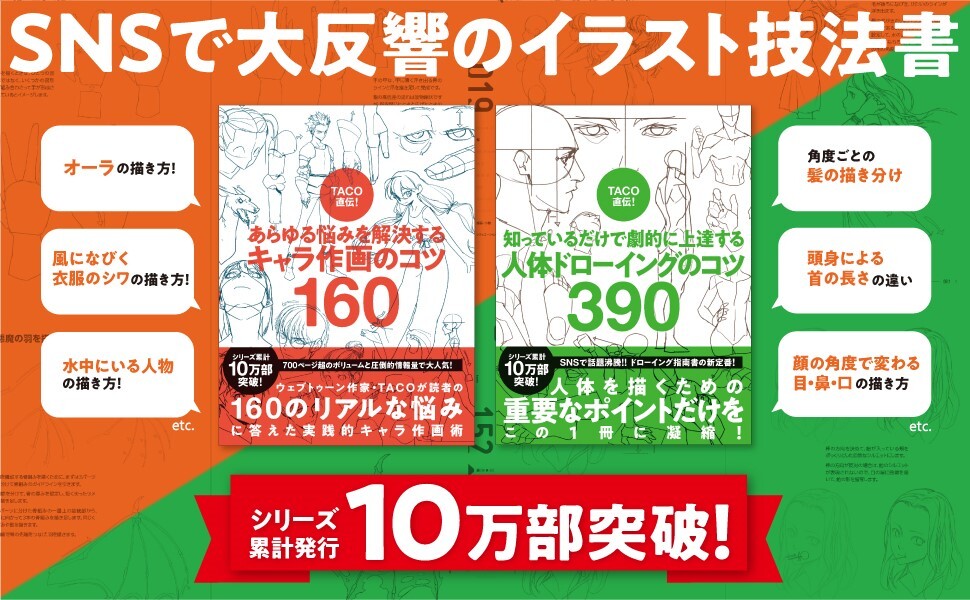 本書は、ウェブトゥーン作家・TACOによる、人を描くために押さえるべき重要なポイントを390以上集めた人体ドローイングガイドです。著者の経験と独自の解釈により培ったドローイングのルールをこの1冊にまとめています。説明が簡潔で、ポイントとなる絵の部分が色付きで強調されているので、重要なポイントだけを簡単に理解し、応用できるようになっています。また、上半身、下半身、顔、腕と手、脚と足など、部位ごとにパートが分かれているので、効率的に学べます。本書は、絵を真似たり参考にして描いたりするのはもちろん、手軽に持ち歩いて、目で覚えるイメージトレーニングの練習にも適しています。登場する理論を応用し、さらに自分に合ったやり方で理論を組み立てるのもよいでしょう。本書のコツをとことん活用し、楽しく、簡単に、絵を上達させましょう!