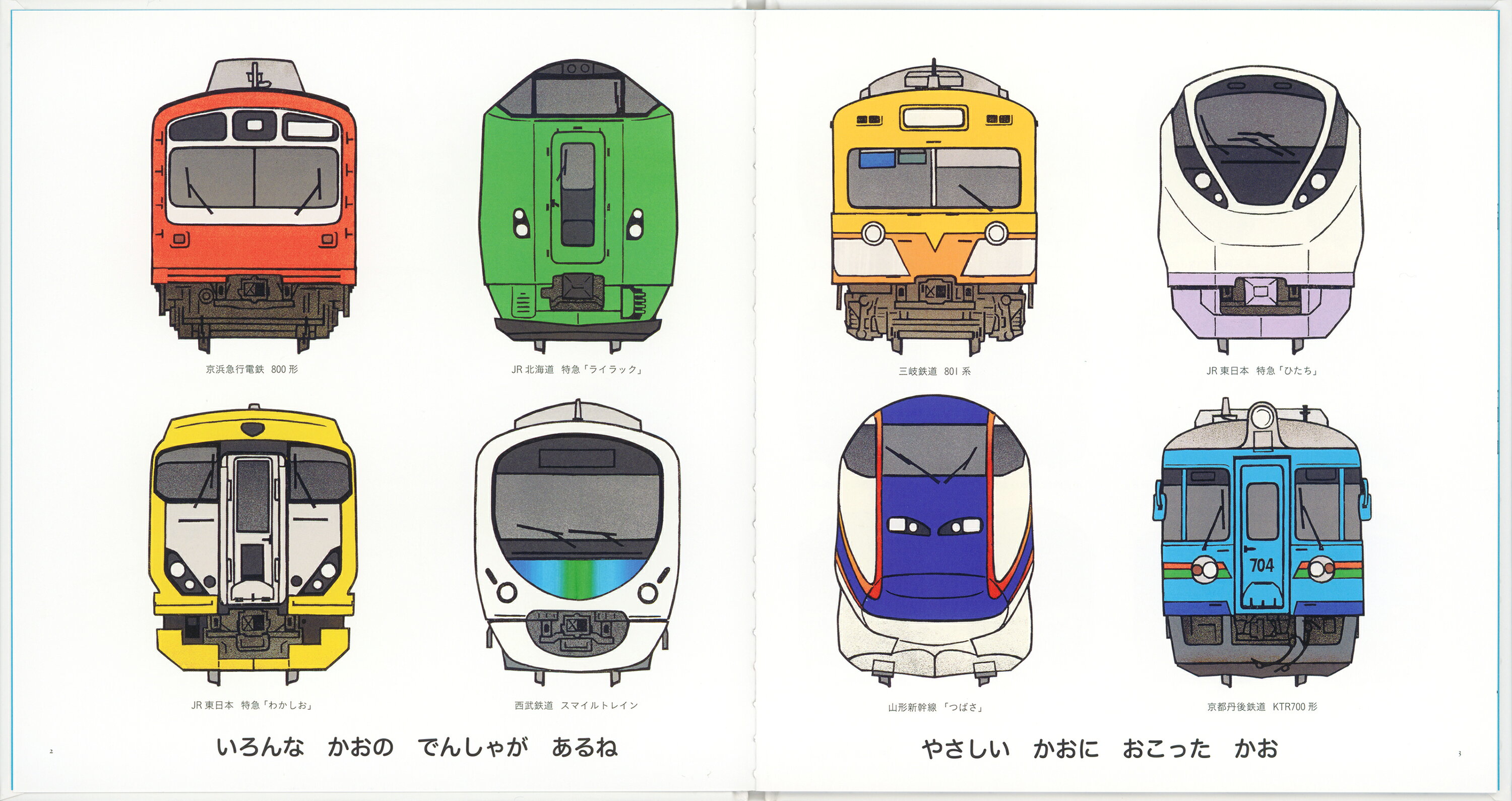いろんな顔の電車があるね。やさしい顔の電車に、おこった顔の電車。すきなのどーれ。