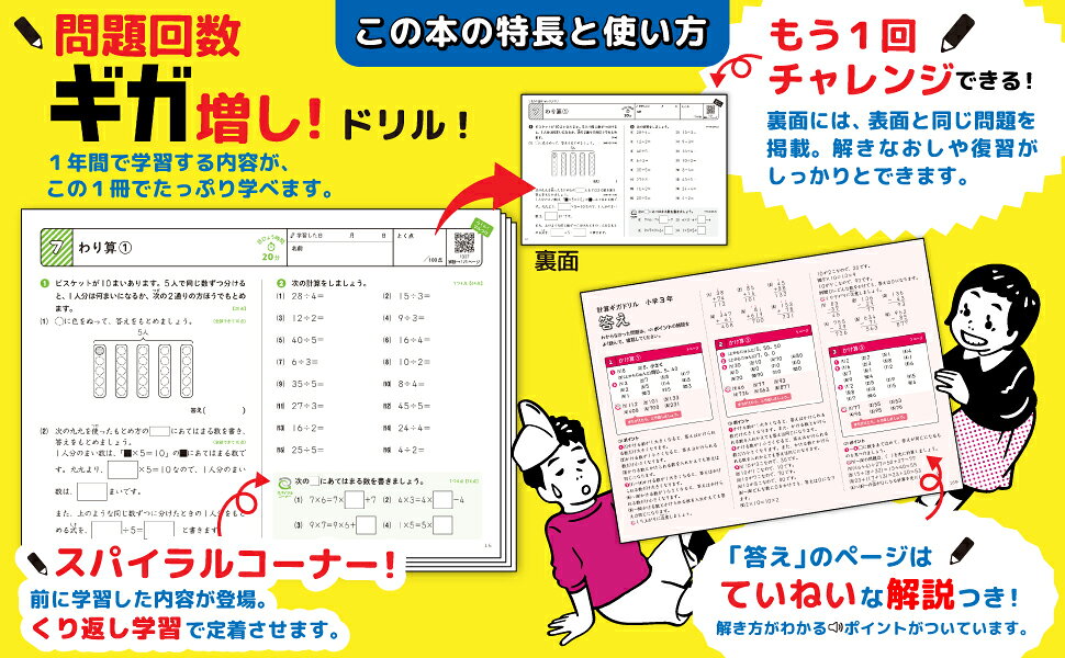 1年間で学習する内容がこの1冊でたっぷり学べます。日常学習はもちろん、長期休暇や学年末の総復習まで長いスパンで使える1冊です。