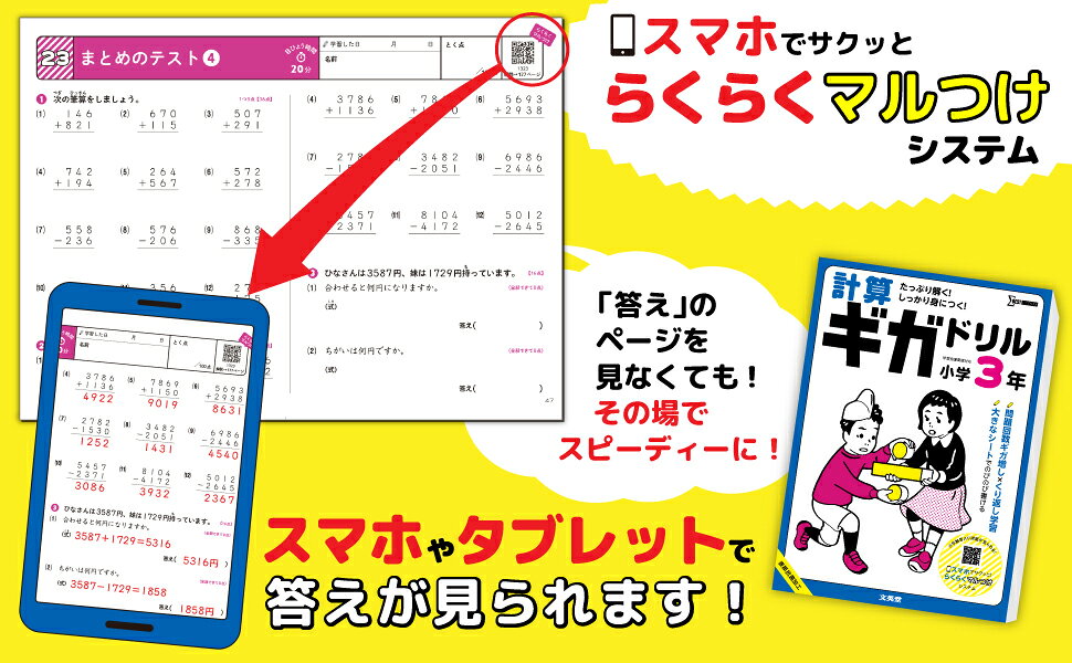 スマホやタブレットでQRコードを読み込むだけで、解答入りの紙面を簡単に確認できます。