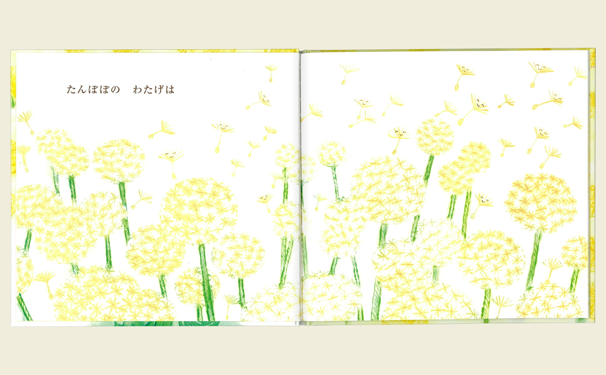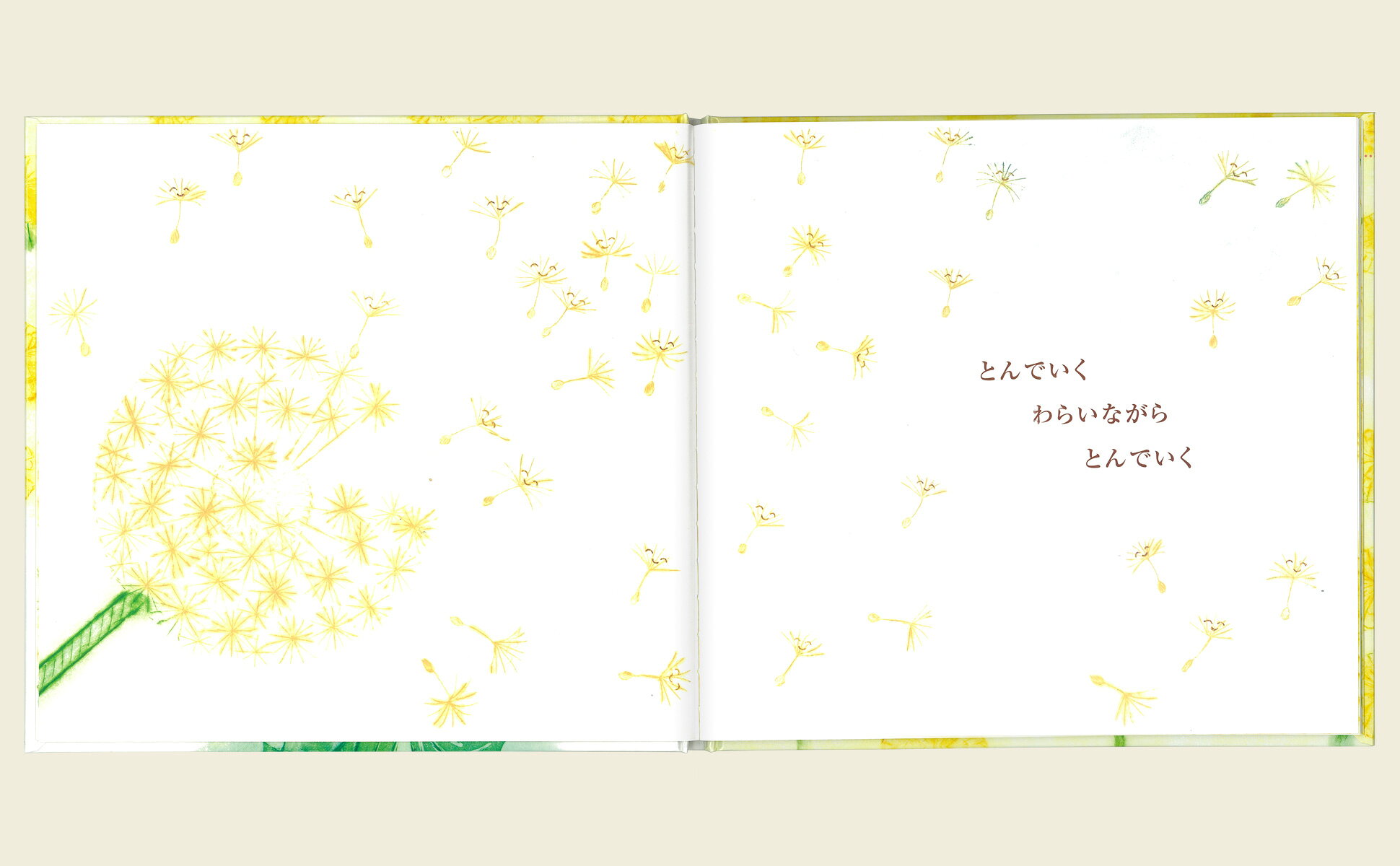 たんぽぽになれば、友達に、うさぎに、ちょうちょに、また会うことができます。風に身をまかせて飛んでいく綿毛は、自分で行き先を決めることができません。それでもなお、綿毛が笑いながら飛んでいくのは、新たな出会いへの希望に胸を膨らませ、再び野原いっぱいに花を咲かせたいと願っているから。画面からあふれんばかりに描かれたたんぽぽからは、巡る命の輝きと生きるよろこびが伝わってきます。旅立ちの季節、出会いの春に読みたい絵本です。