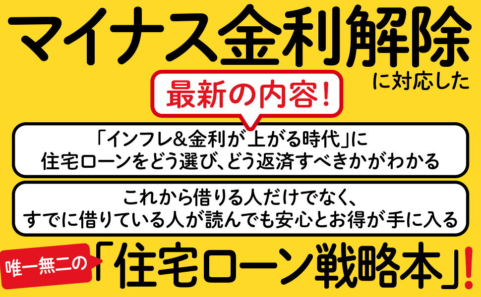 マイナス金利解除にあわせて発売される住宅ローン解説書の決定版。金利や投資を含めた新時代のマネーリテラシーが身につく1冊