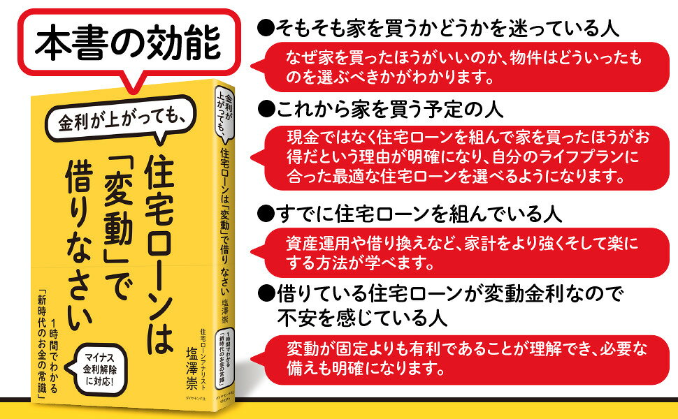 ![金利が上がっても、住宅ローンは「変動」で借りなさい1時間でわかる「新時代のお金の常識」[塩澤崇]](https://tshop.r10s.jp/book/cabinet/0316/9784478120316_1_2.jpg)