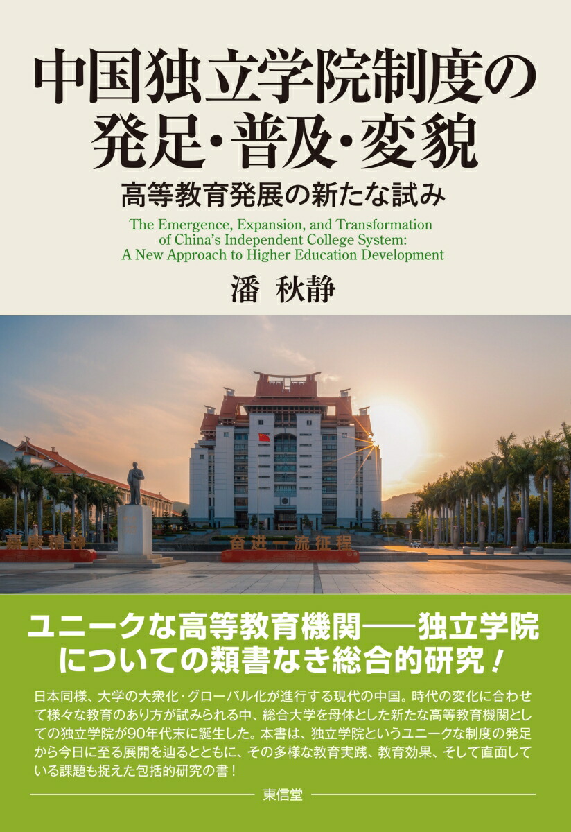 ユニークな高等教育機関ー独立学院についての類書なき総合的研究!日本同様、大学の大衆化・グローバル化が進行する現代の中国。時代の変化に合わせて様々な教育のあり方が試みられる中、総合大学を母体とした新たな高等教育機関としての独立学院が90年代末に誕生した。本書は、独立学院というユニークな制度の発足から今日に至る展開を辿るとともに、その多様な教育実践、教育効果、そして直面している課題も捉えた包括的研究の書!