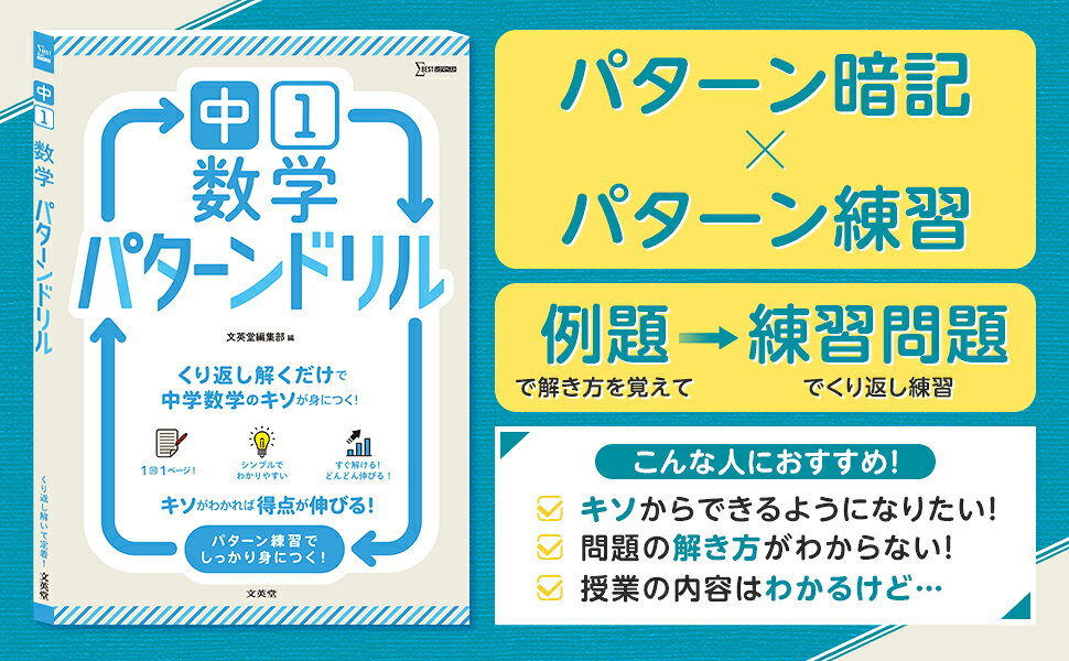 同じような問題をくり返して解くパターン練習で、中学数学の基礎が身につき、問題が自然と解けるようになります。