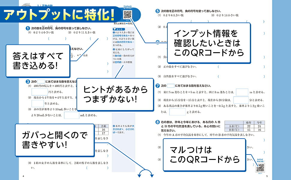 紙面上に、スマホをかざすだけで重要事項に飛べるQRコードを掲載。また、解答入り紙面を参照できるQRコードも掲載し、すぐに解答を確認できるようにしました。