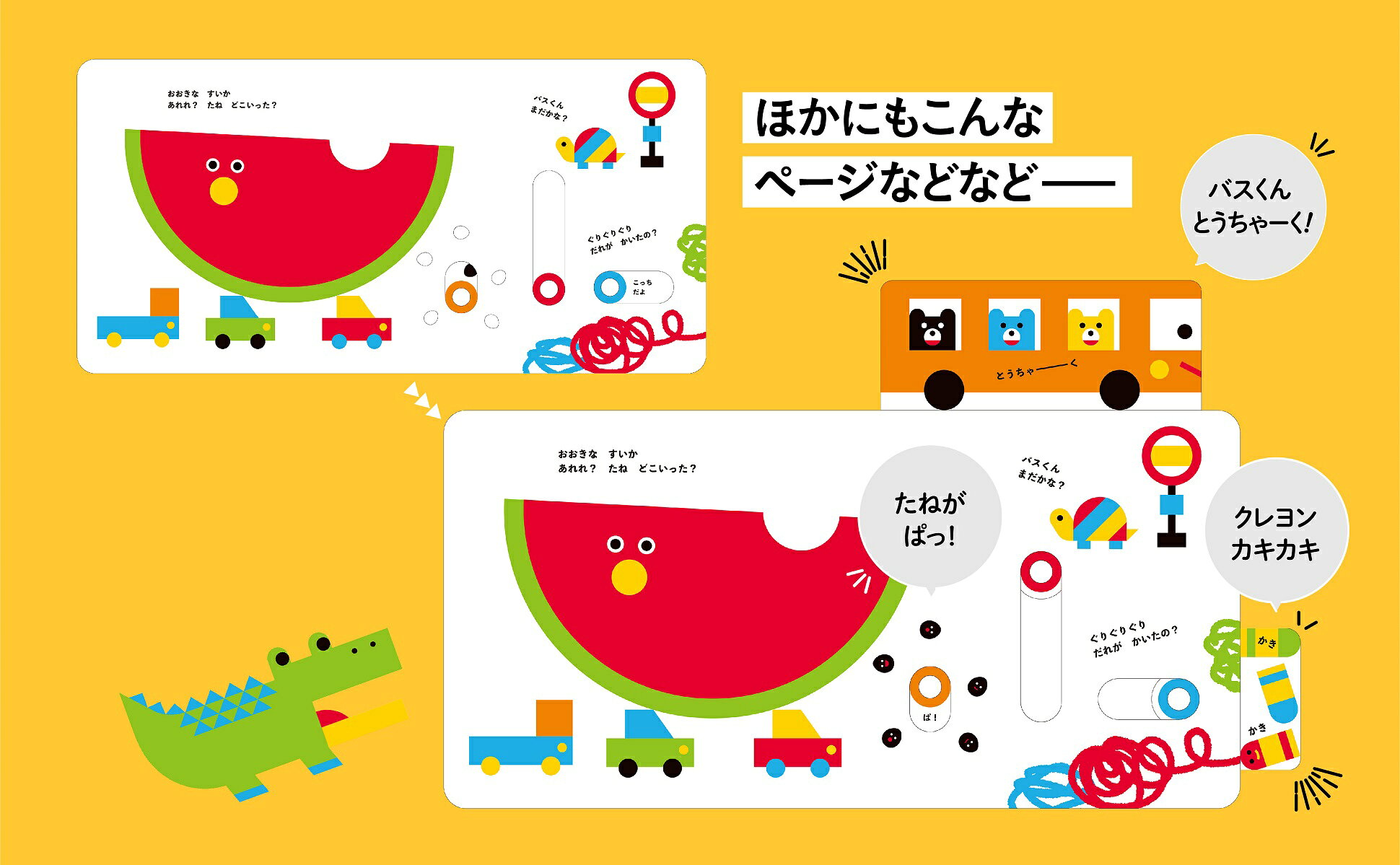 「犬がひょっこり!」「玉がごろん!」「バスがとうちゃーく!」