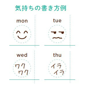 曜日の下の丸の中には、「その日、自分がどんな気持ちだったか」という「感情マーク」を書き入れます。顔の表情っぽいマークでも、文字のマークでも構いません。