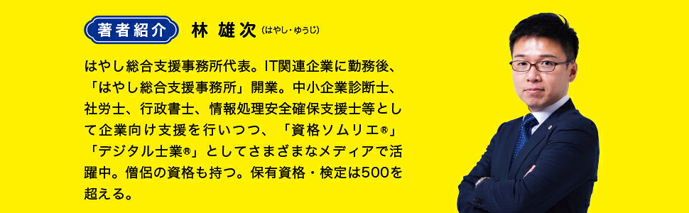 はやし総合支援事務所代表。IT関連企業に勤務後、「はやし総合支援事務所」開業。中小企業診断士、社労士、行政書士、情報処理安全確保支援士等として企業向け支援を行いつつ、「資格ソムリエ」「デジタル士業」としてさまざまなメディアで活躍中。僧侶の資格も持つ。保有資格・検定は500を超える(本データはこの書籍が刊行された当時に掲載されていたものです)