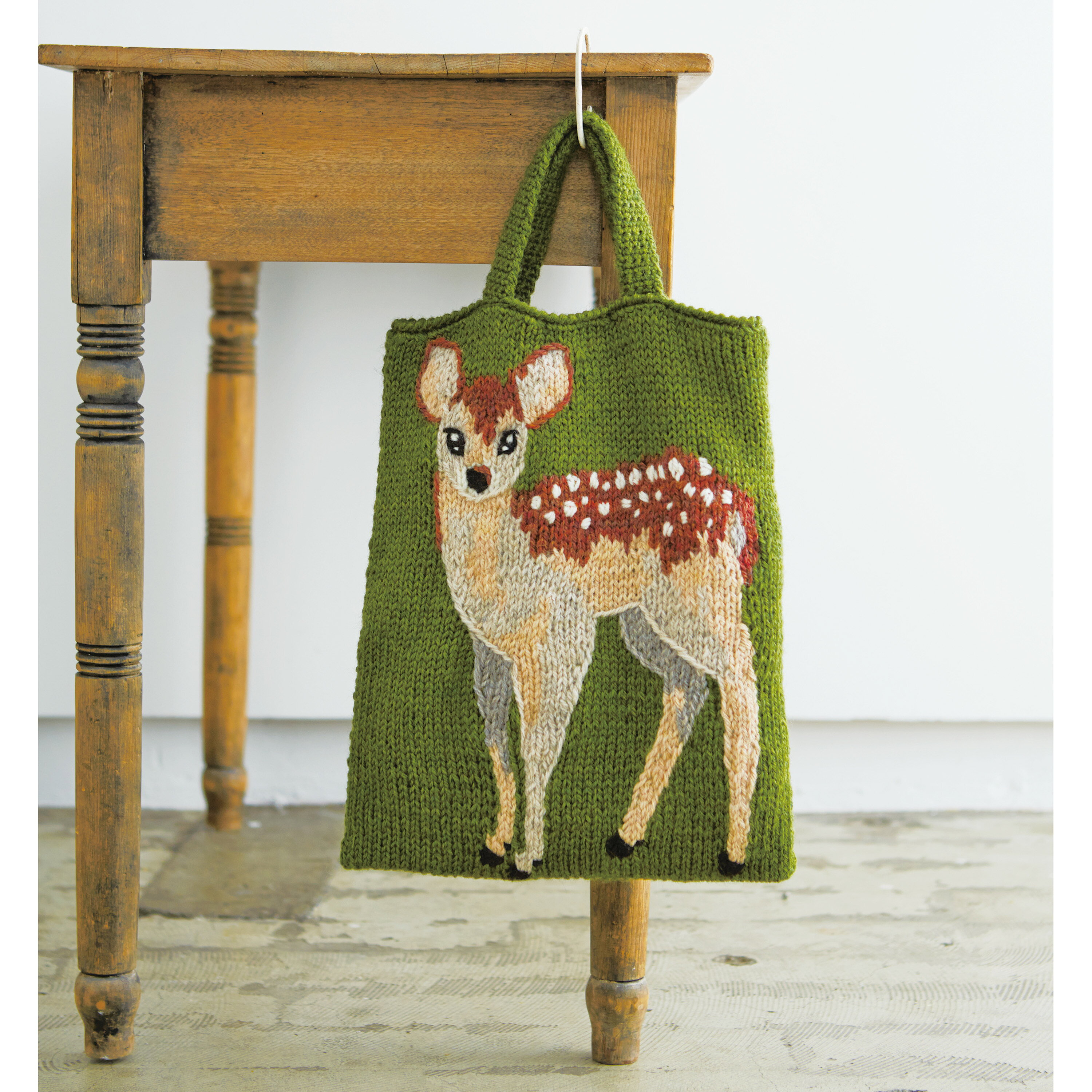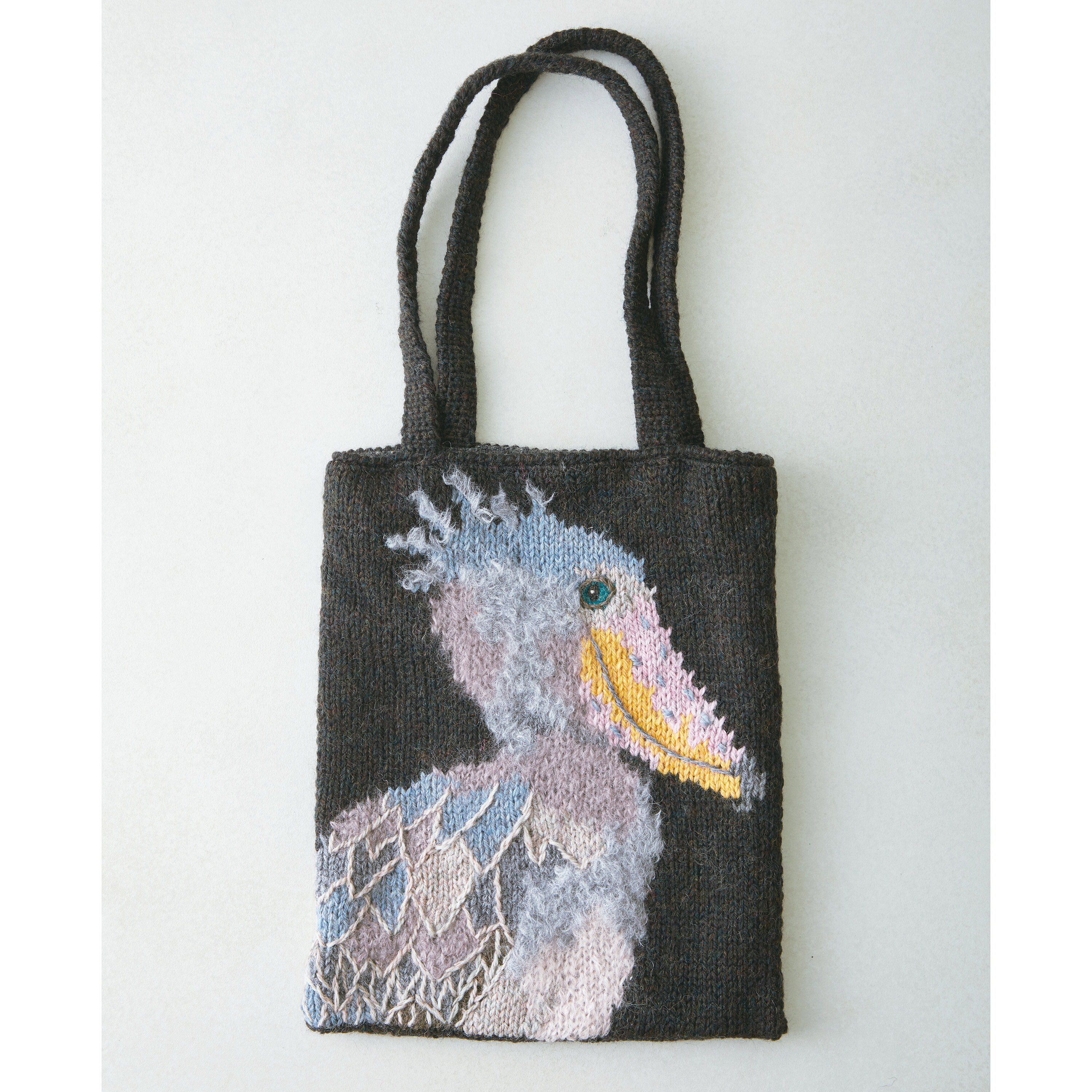 動物たちの姿を、ニットバッグに編み込みました。