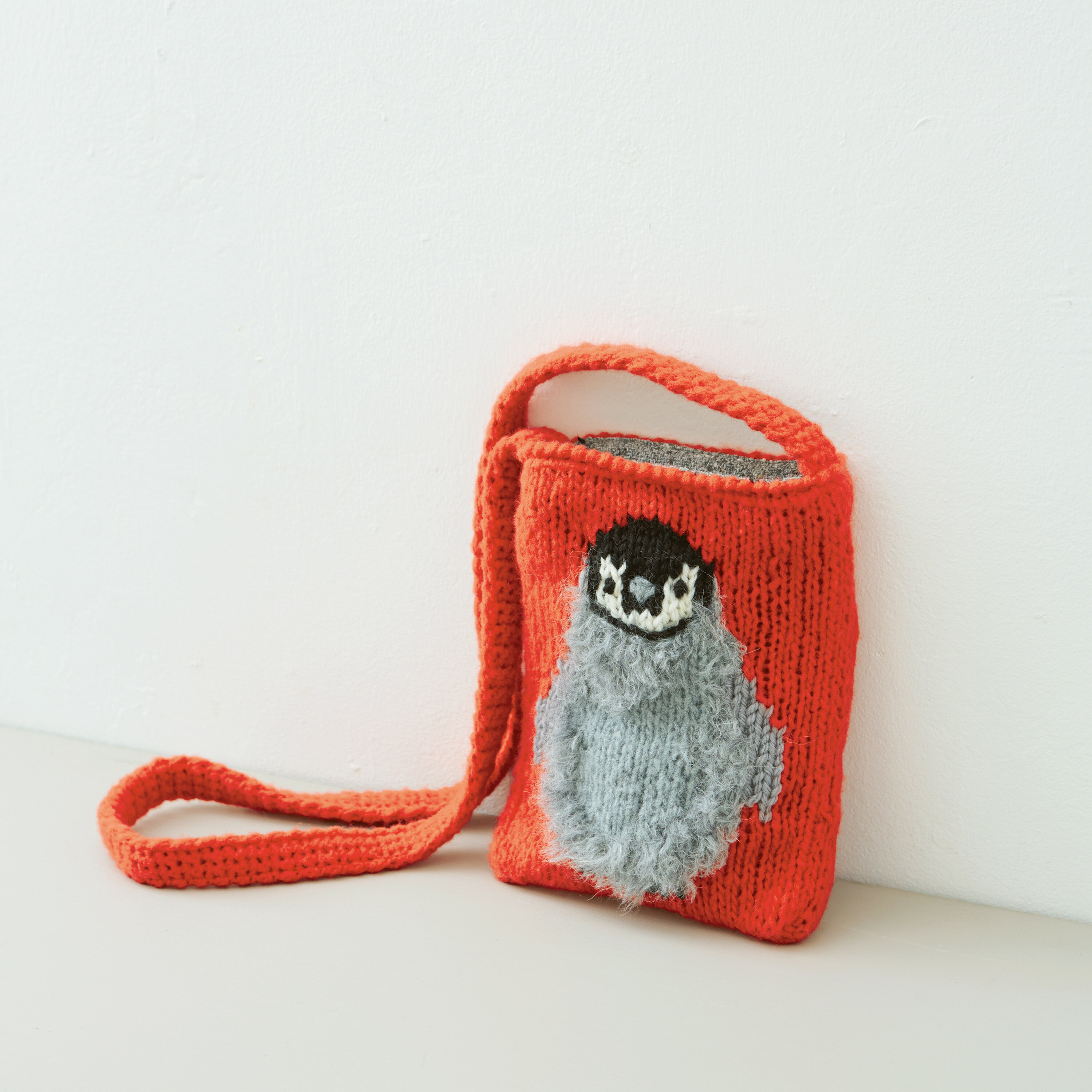 本体をメリヤス編みで編み、編み終わったあとに毛糸で刺しゅうをし、前後をあわせてかぎ針でとじた後に持ち手と中袋をつければ完成。持ち手の長さや本体の大きさを変えるなど、大きさや形にさまざまなバリエーションを持たせました。ポシェットやマフラーなどの変化形も少しだけ収録しています。