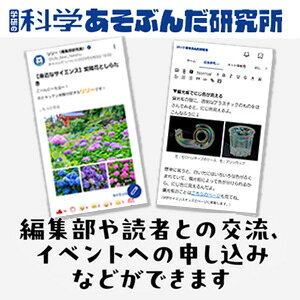 「あそぶんだ研究所」は、読者と編集部がいっしょになり、科学を遊び尽くすオンラインコミュニティサイト。疑問に思ったことを編集部に質問したり、おうちからワークショップに参加したり、ここでしかできない体験が盛りだくさんです。