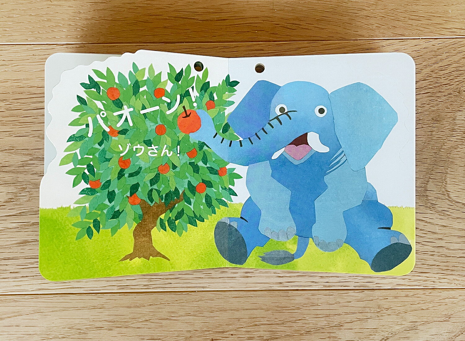 小型のボードブックで、小さな手でも扱いやすく持ち歩きにも便利。