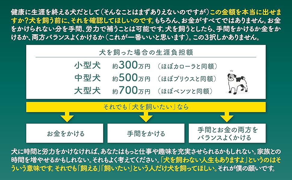 飼い主には人生があり、犬には犬生がある。「犬と共に幸せに生きる」その決意と覚悟がある人だけが、本書を読んでください。