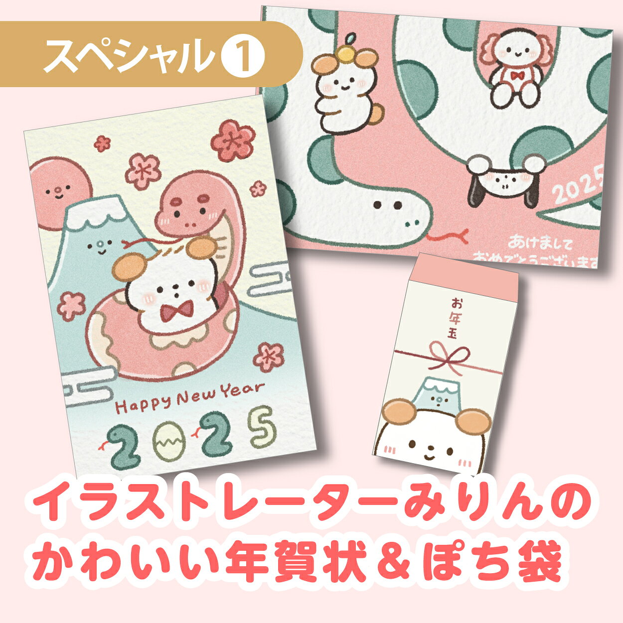 イラストレーターみりんによるかわいい年賀状&ポチ袋を収録。