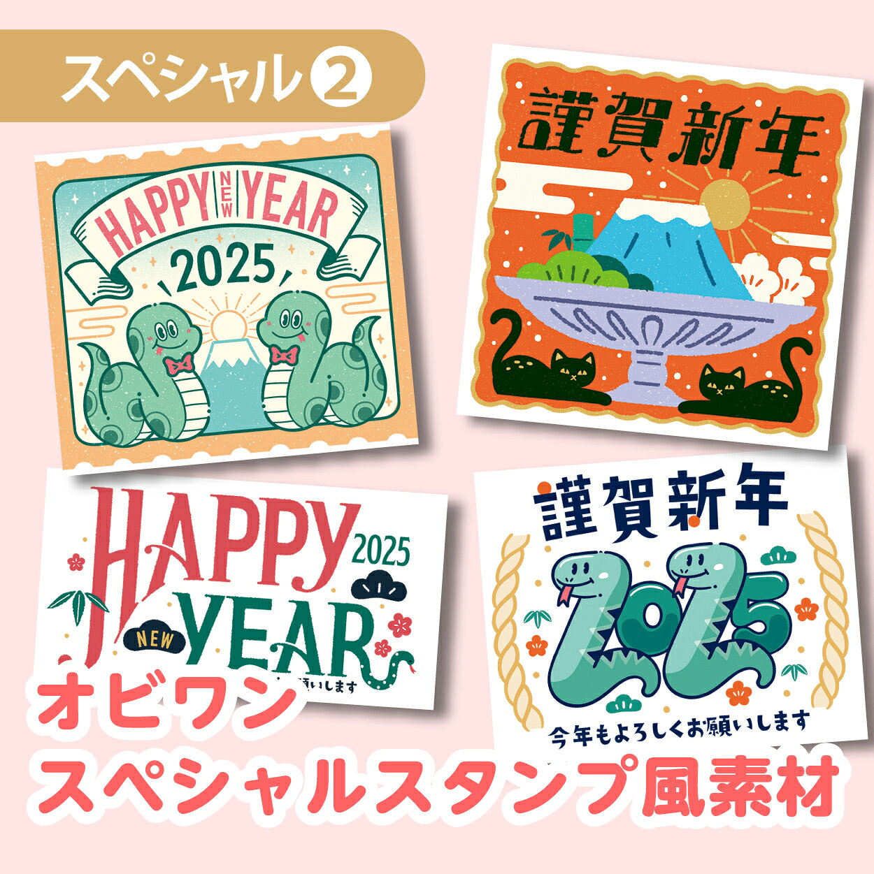 レトロでかわいい!オビワン特製スタンプ風素材で、手軽に新年のご挨拶を。