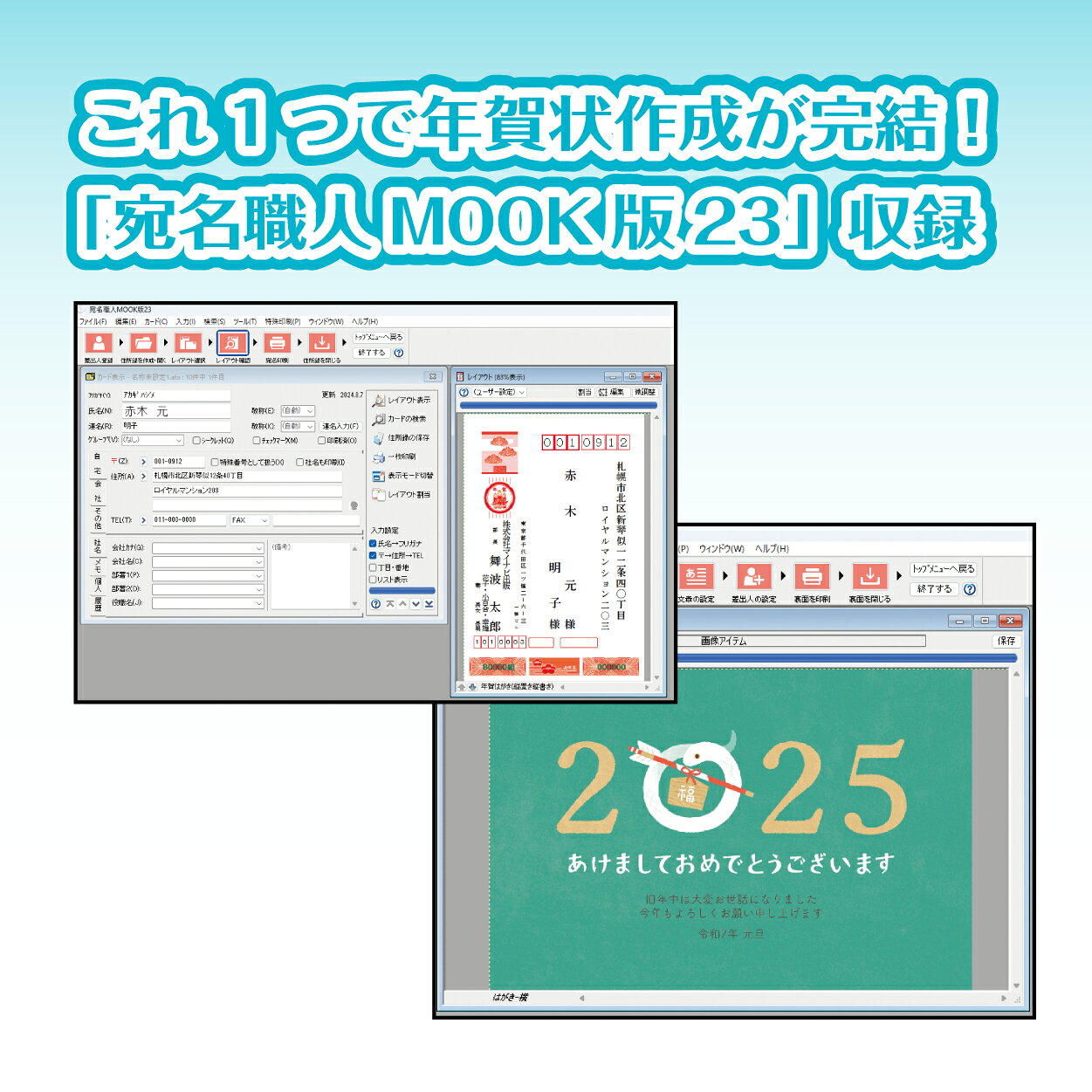 Windows PC向け年賀状ソフト「宛名職人MOOK版23」を収録。表書きから裏書きの作成・印刷までこれ1つで完結できます!