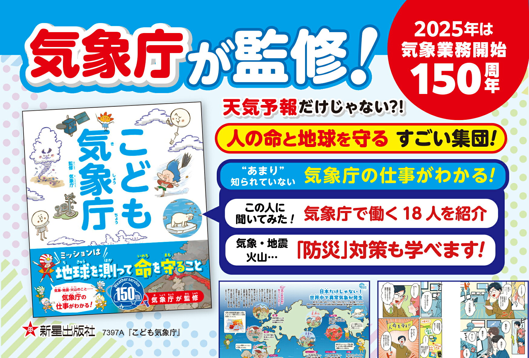この本ではマンガと楽しいイラストで、普段ニュースなどで耳にする気象・地震火山に関する用語や現象はもちろん、あまり知られていない気象庁の仕事も紹介しています。