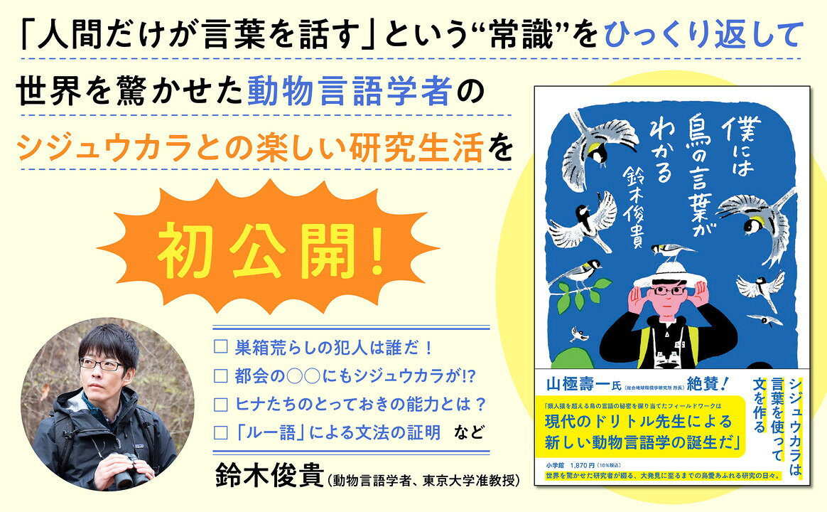 言葉を持つのは人間だけであり、鳥は感情で鳴いているとしか認識されていなかった「常識」を覆し、「シジュウカラが20以上の単語を組み合わせて文を作っている」ことを世界で初めて解明した研究者による科学エッセイ。