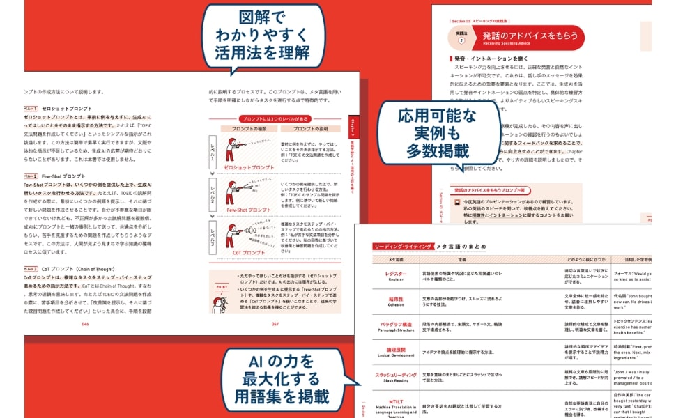 1 英語学習とAI活用の土台を築く(AIは英語学習にどう役立つのか/AIで英語の壁を破る3つのスキル ほか)/2 AIの力を最大化ー英語学習のメタ言語ー(単語学習/リーディング・ライティング ほか)/3 TOEICの壁をAIと超える(テストを深く理解する/AIで対策問題を作成する ほか)/4 ビジネス英語の壁をAIと打ち破る(スピーキング力を磨く/ライティング力を磨く)/AIに仕事を遂行させる英語実践術(リーディングの実践法/ライティングの実践法 ほか)