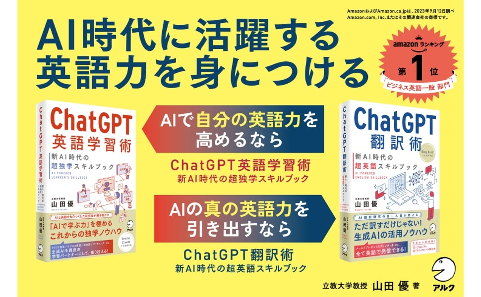 本書は、AIと英語を知り尽くした研究者が、AIを「最高の学習パートナー」にするためのノウハウを書いたものです。これからのAI時代に、英語を学ぶ人の必読書になっています。