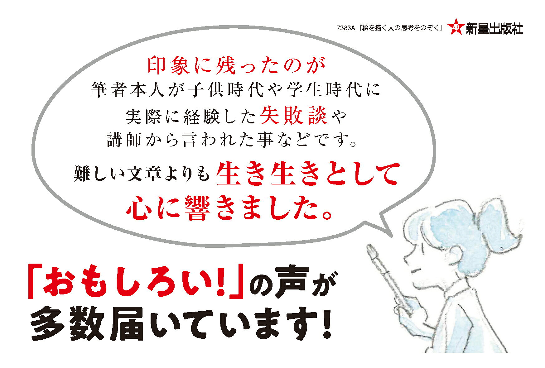 絵を描いてみたい人には、背中を押されるような、絵を描いているけどもっとうまくなりたい人には、目からウロコが落ちるような、絵に興味を持つ人には、その世界をもっと知りたくなるような言葉がきっと見つかる1冊です。
