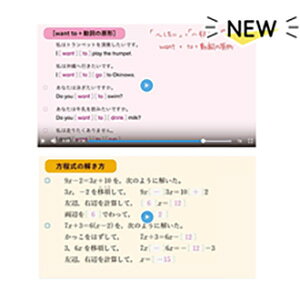 数学・英語・国語・理科・社会の5教科の「基本チェック」に入っているQRコードをスマートフォンなどで読み込むと、そのページの要点をまとめた動画を見ることができます。