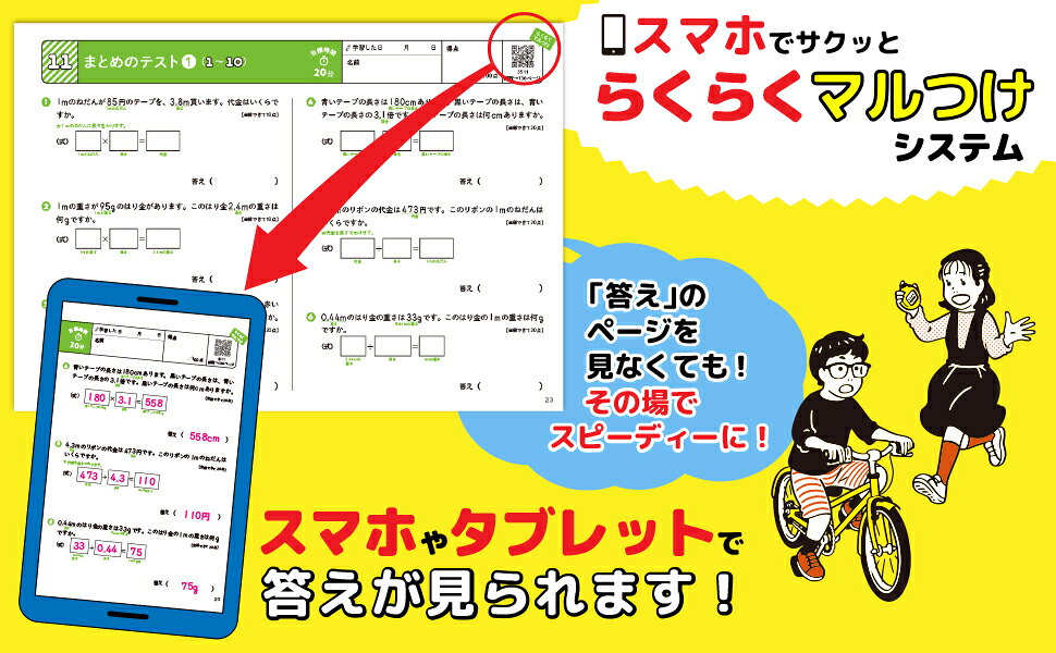 スマホやタブレットでQRコードを読み込むだけで、解答入りの紙面を簡単に確認できます。
