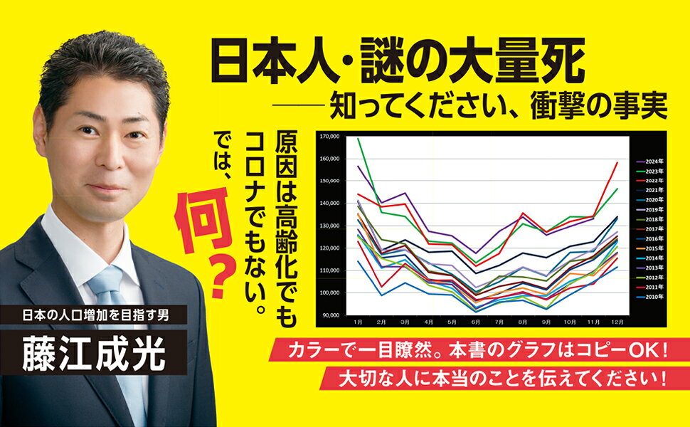 2022年以降、わが国では戦争以外で歴史上類例のない大量死が起きています。あなたはこの恐るべき事実に気づいていますか? あなたのご家族や友人、同僚たちで、このことを知っている人はどのくらいいるでしょう? 国にとって、もっとも重大かつ重要な使命は「国民の生命を守る」ということであるはず。しかし、わが国の政府も、それを監視すべき国会も報道機関も、そんなことには関心がないようです。