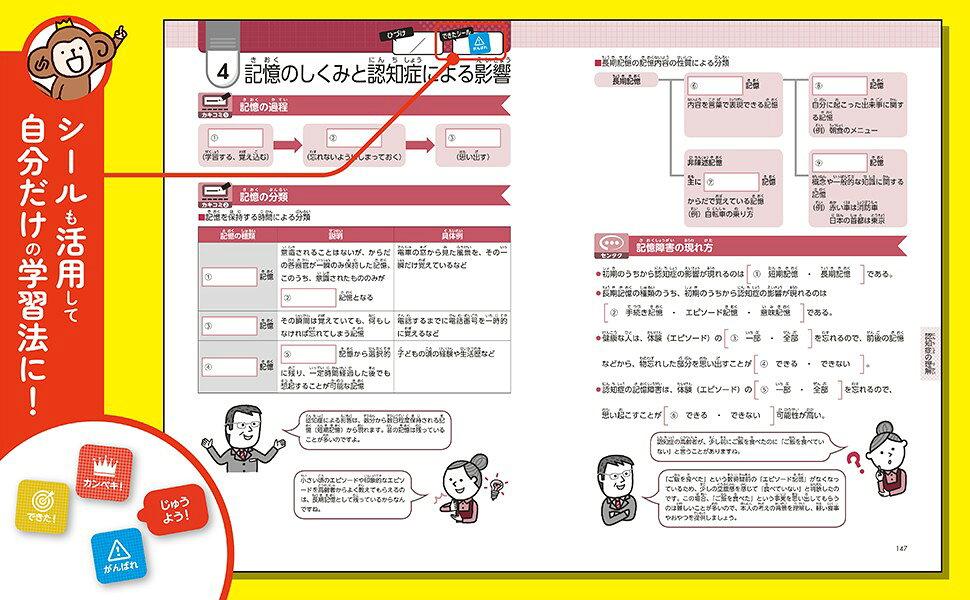 ・空欄に書き込む、語句やイラストを線でつなぐ、図やイラストで覚えるなど、いろいろなタイプのチャレンジ問題で、飽きずに楽しく学習できる