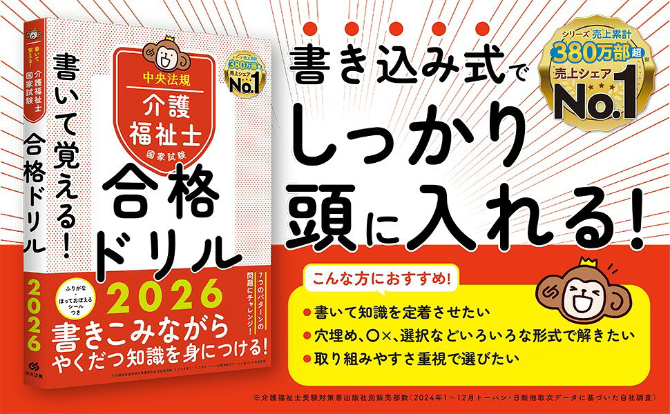 ![書いて覚える!介護福祉士国家試験合格ドリル2026[中央法規介護福祉士受験対策研究会]](https://tshop.r10s.jp/book/cabinet/2113/9784824302113_1_5.jpg)