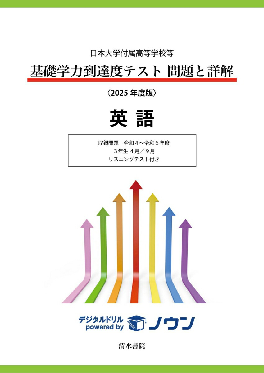 令和4年度から令和6年度(3年間収録予定)の三年生で実施された問題、解答・解説。ヒアリング用音声はダウンロード形式。デジタルドリル「ノウン」対応。