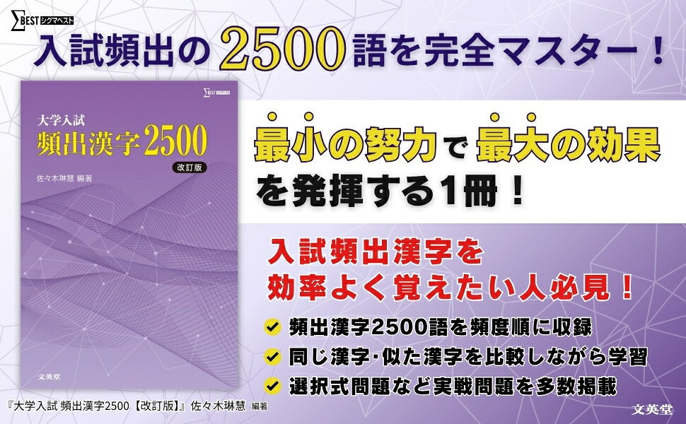![大学入試頻出漢字2500[改訂版][佐々木琳慧]](https://tshop.r10s.jp/book/cabinet/2472/9784578272472_1_2.jpg)