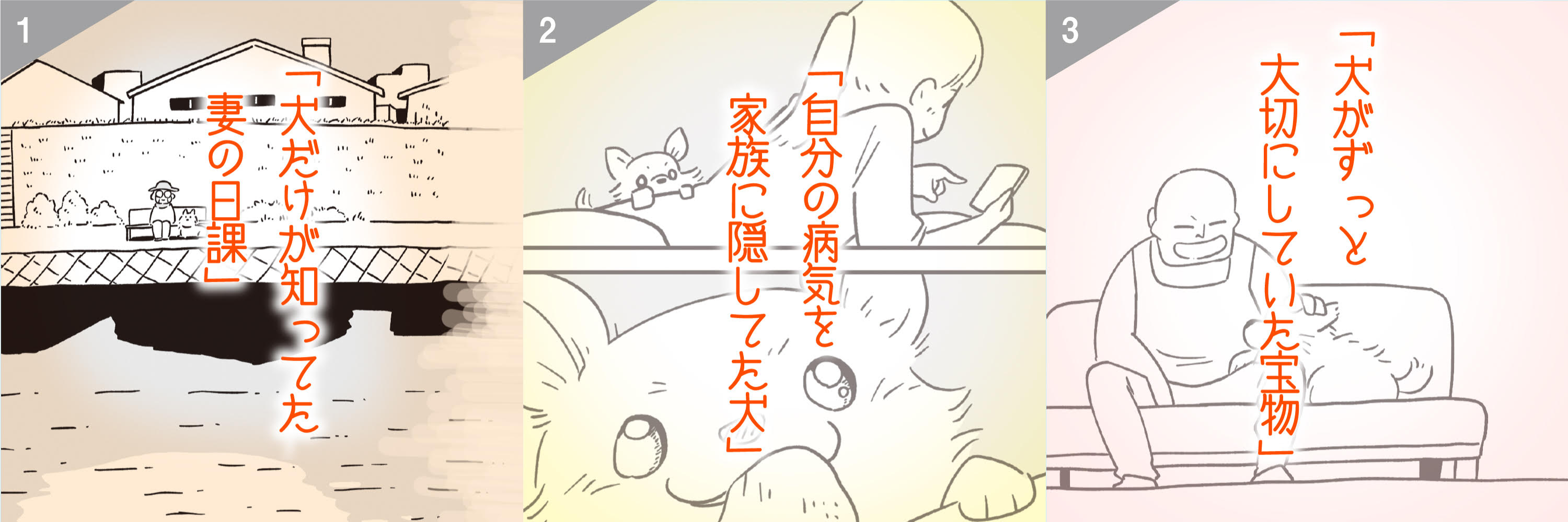 妻が通った散歩道ーフィロスー/幸福な瞬間ーリロー/生きているだけで自慢ーベルー/行かないでーリンー/もう過去はいらないーモモー/君を待つ犬ーレンー/やさしい落とし物ーオマエー/思い出のソファーハルー/母である証明ータロとジロー/君が好きだからーグッチー/後悔する意味ーレオンー/誰にも取られたくないーアキー/やさしい嘘ーコタローー/孤独からの1センチートッポー/犬との約束ービッキーー/2人と1匹ーピートー/嫌われる勇気ーカールー/幸せを呼ぶ言葉ーラッキーー/言えなかった気持ちーハナー/犬の記憶ーリュウー