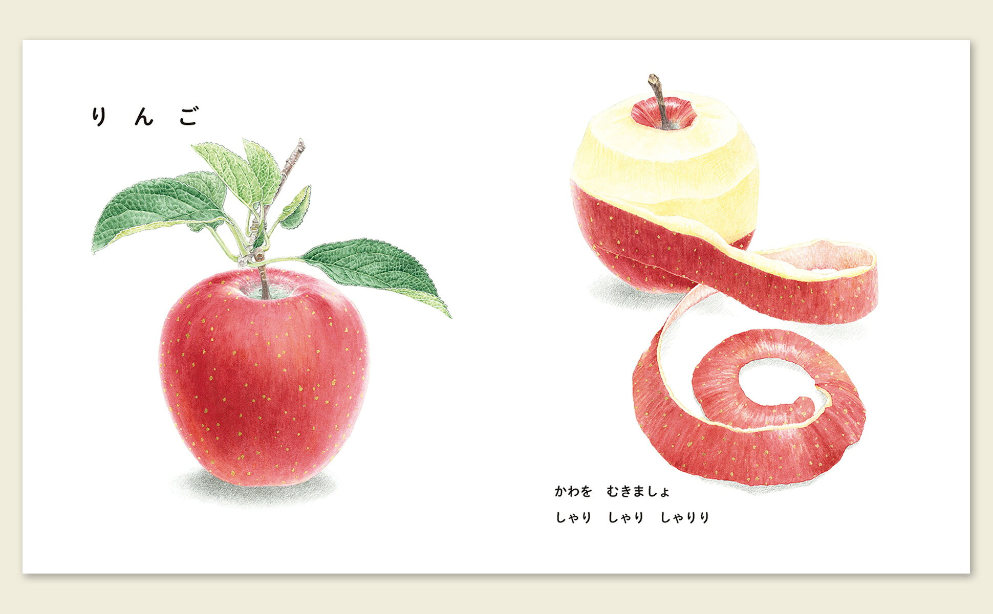 オノマトペや心地よいリズムとくり返しの言葉は、あかちゃんにくだものの美しさと鮮やかさを届けます。
