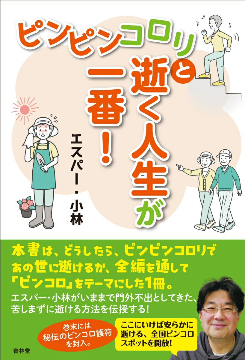 104歳で午前中に畑仕事、夕食後に就寝してコロリ。理想のピンコロ!人は寿命までは死なないが、寿命を短くする方法は、ある。ただ生かしているだけの状態で、何年も延命してしまったときの本人の苦痛や、膨大な費用、家族の負担を考えたら、ピンコロは絶望的な状況の中で、みんなが幸せになる唯一無二の救済になるのではないか。本書は、どうしたら、ピンピンコロリであの世に逝けるか、全編を通して「ピンコロ」をテーマにした1冊。エスパー・小林がいままで門外不出としてきた、苦しまずに逝ける方法を伝授する!巻末には秘伝のピンコロ護符を封入。ここにいけば安らかに逝ける、全国ピンコロスポットを開放!