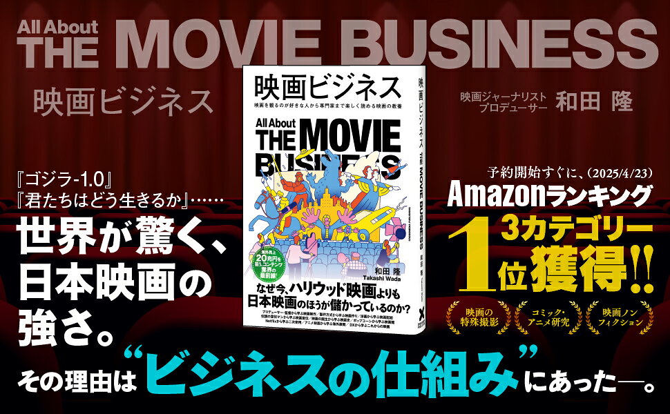 2024年、『ゴジラー1.0』がアカデミー賞視覚効果賞を、『君たちはどう生きるか』が長編アニメーション賞を受賞するなど、日本映画が世界的な注目を集めています。さらに2024年の国内興行収入ランキングでは、上位10作品のうち8作品を日本映画が占め、その勢いが顕著です。本書は、17年間にわたり映画業界紙の記者として第一線で取材をしていた著者が、映画産業の仕組みと現状を徹底解説する一冊です。製作から配給・興行、二次使用まで、映画ビジネスの全工程を網羅し、業界の最新動向や課題、未来の展望までを詳しく解説します。さらには、著者が取材のなかで目撃した映画業界の驚きエピソードも満載。映画ビジネスについて楽しく学ぶことができます。