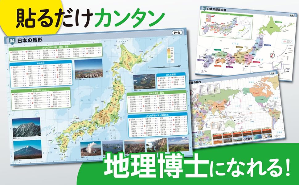 また、日本地図、世界地図、日本の地形、国旗のポスターはリビングに貼って、ニュースを見ながらチェックする使い方がお勧めです。新学習指導要領にも対応しています。