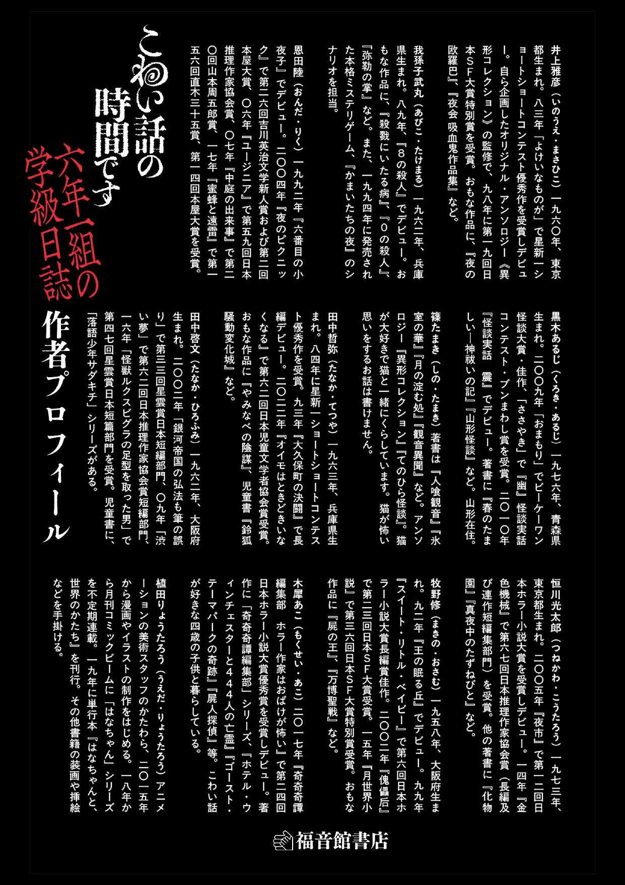 ミステリー、SF、幻想、怪奇など様々なジャンルで活躍する作家たちが、子どもたちを本気で怖がらせようと集結。