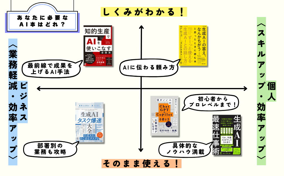 | 内容紹介 | 具体的なノウハウ満載 | 初心者からプロレベルまで! | 部署別の業務も攻略 | AIに伝わる頼み方 | 最前線で成果を上げるAI手法 |