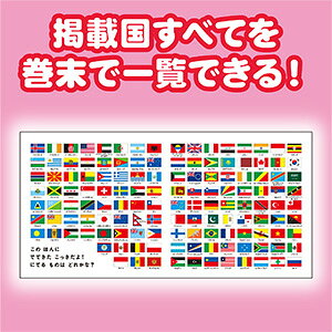 本書に掲載した135 カ国の国旗を巻末に掲載。「太陽みたいな国旗はどれだっけ?」「アメリカに似てる国旗を探そう!」などの声かけで国旗の興味はどんどん広がります。親子で楽しんでください。