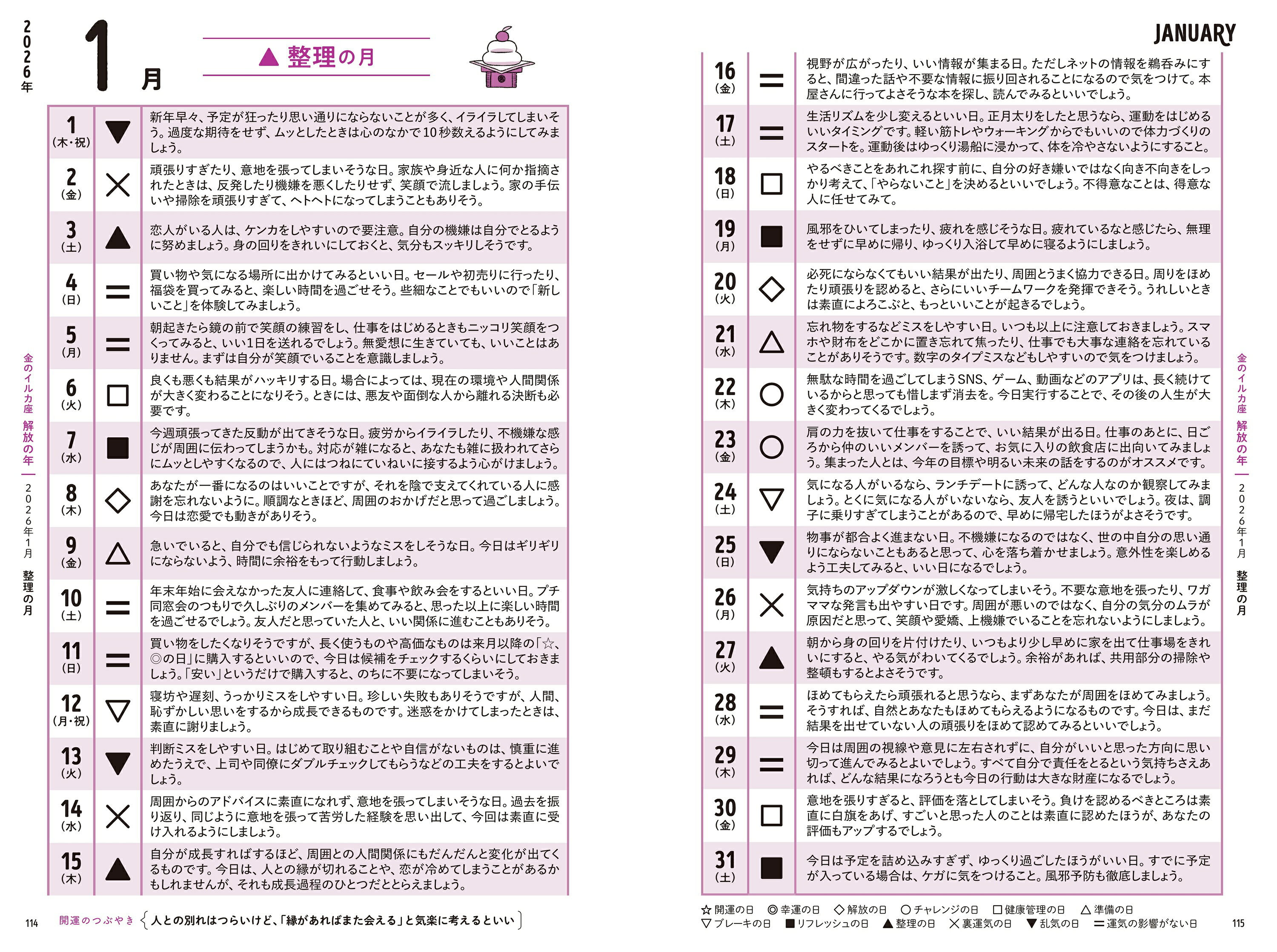 ◎2025年9月〜2026年12月まで毎月、毎日、アドバイスぎっしり!「運気カレンダー」
