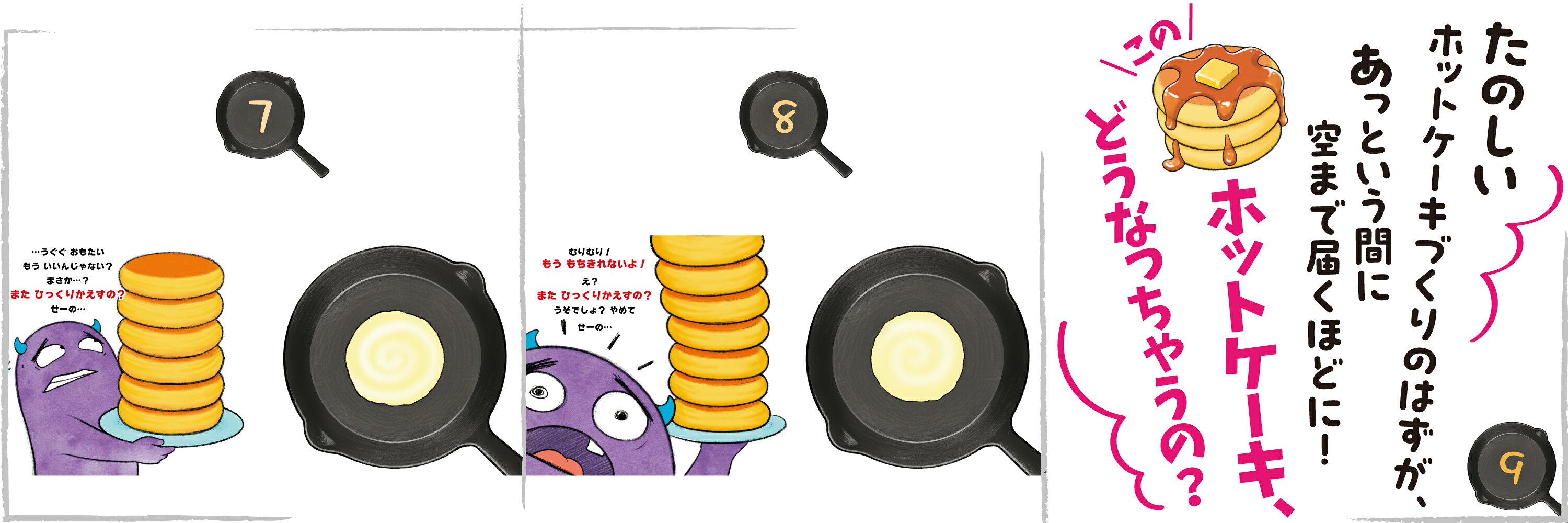 あっというまに、ホットケーキの山は空までとどくほどに!