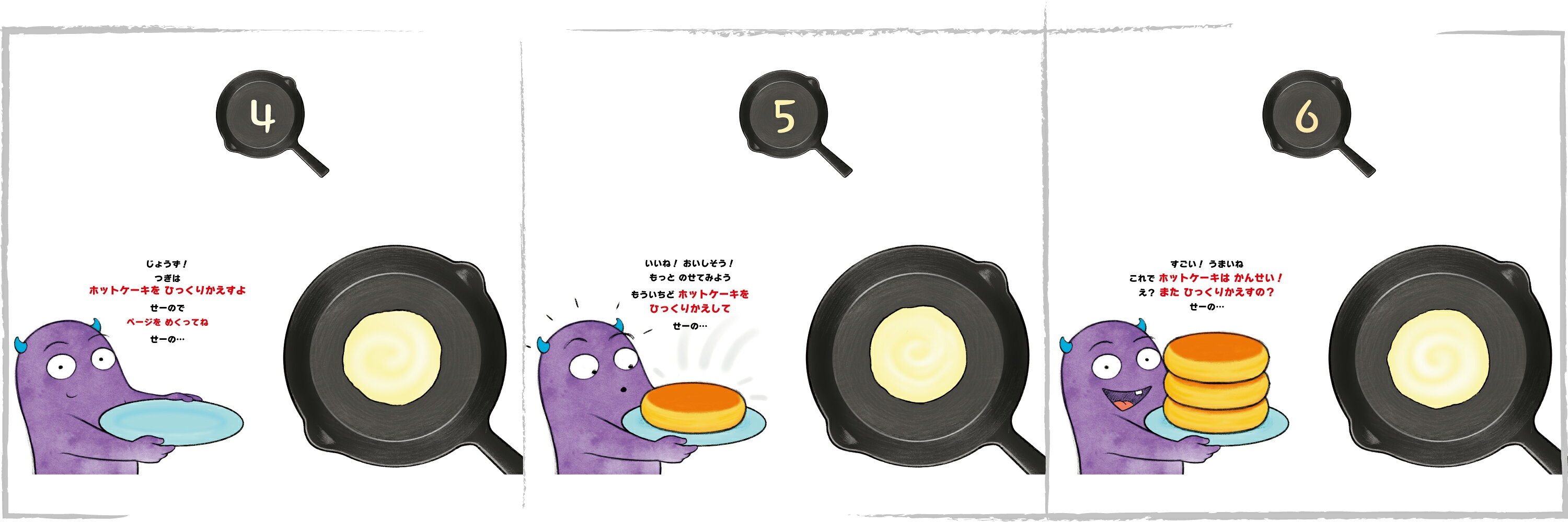いらずらホットケーキと格闘するドタバタ絵本