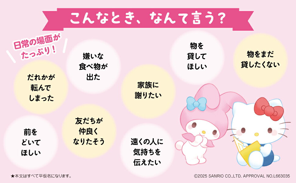 毎日、安心&ハッピーに生きよう!お子さまが、よりよく生きるために、幼児期から身につけておきたい知識を、サンリオキャラクターズと一緒に学ぶ絵本シリーズです。