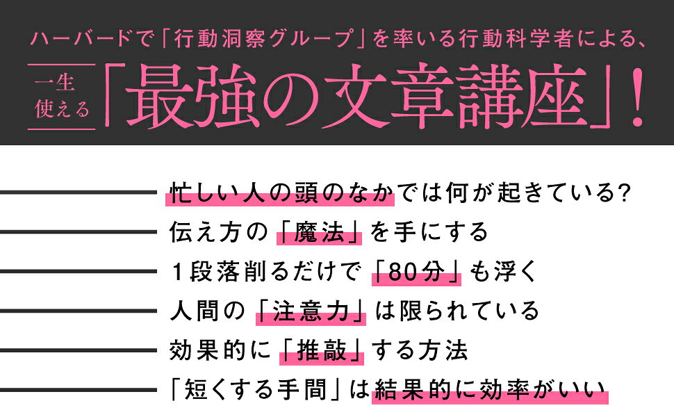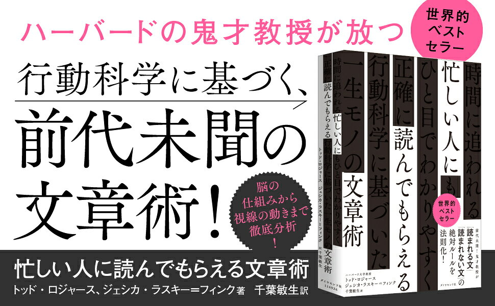 「つい読んでしまう」には、理由がある。ハーバードの鬼才教授が脳の仕組みから視線の動きまで徹底分析。どんなに忙しい人でも、パッと読んで、一発でわかる文章とは?前代未聞、行動科学に基づく文章術!