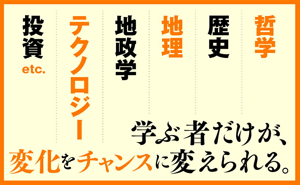 序章 「大学習時代」の到来〜なぜ今、学び続けることが必要なのか?/第1章 なぜ、アジア地政学プログラムが最も良く成功しているのか?/第2章 学びの基本は哲学/第3章 歴史と地理をつなげると人生は明るい/第4章 地政学を使って変化を先読みする方法/第5章 好奇心こそ、我々の生きるエンジン/第6章 時間持ちこそ人生の勝者/第7章 投資思考が人生を豊かにする/第8章 世界最強のビジネススキルは観察力/第9章 テクノロジーを使い倒せ/終章 継続的な学びが未来を切り開く