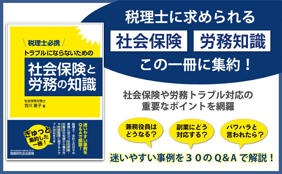 本書は、税理士の先生方が、顧問先のお客様から社会保険・労働保険・労務に関するご相談を受けるシーンを想定して作成し、昨今の改正の流れや解雇・退職にまつわる労務トラブルの防止などポイントを整理しました。