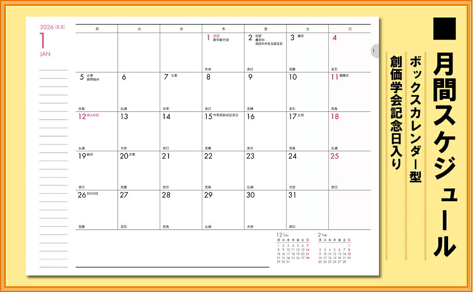 ・マンスリーとウィークリーで予定が把握しやすいバーチカル型